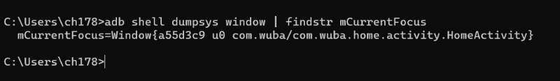 获取手机当前正在运行activity的包名,包名为从左到右数第一个com开头的字段:
