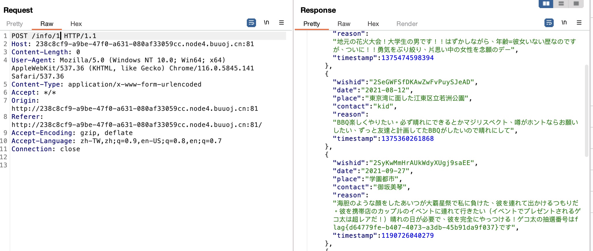 这里的逻辑就是你传入一个时间戳,然后和他设置的最小时间戳做对比,把大的那个时间戳作为 SQL 的查询匹配条件. 这里的思路就很明显了,我们要把它所有的时间戳的记录全部调出来,就能拿到 flag.