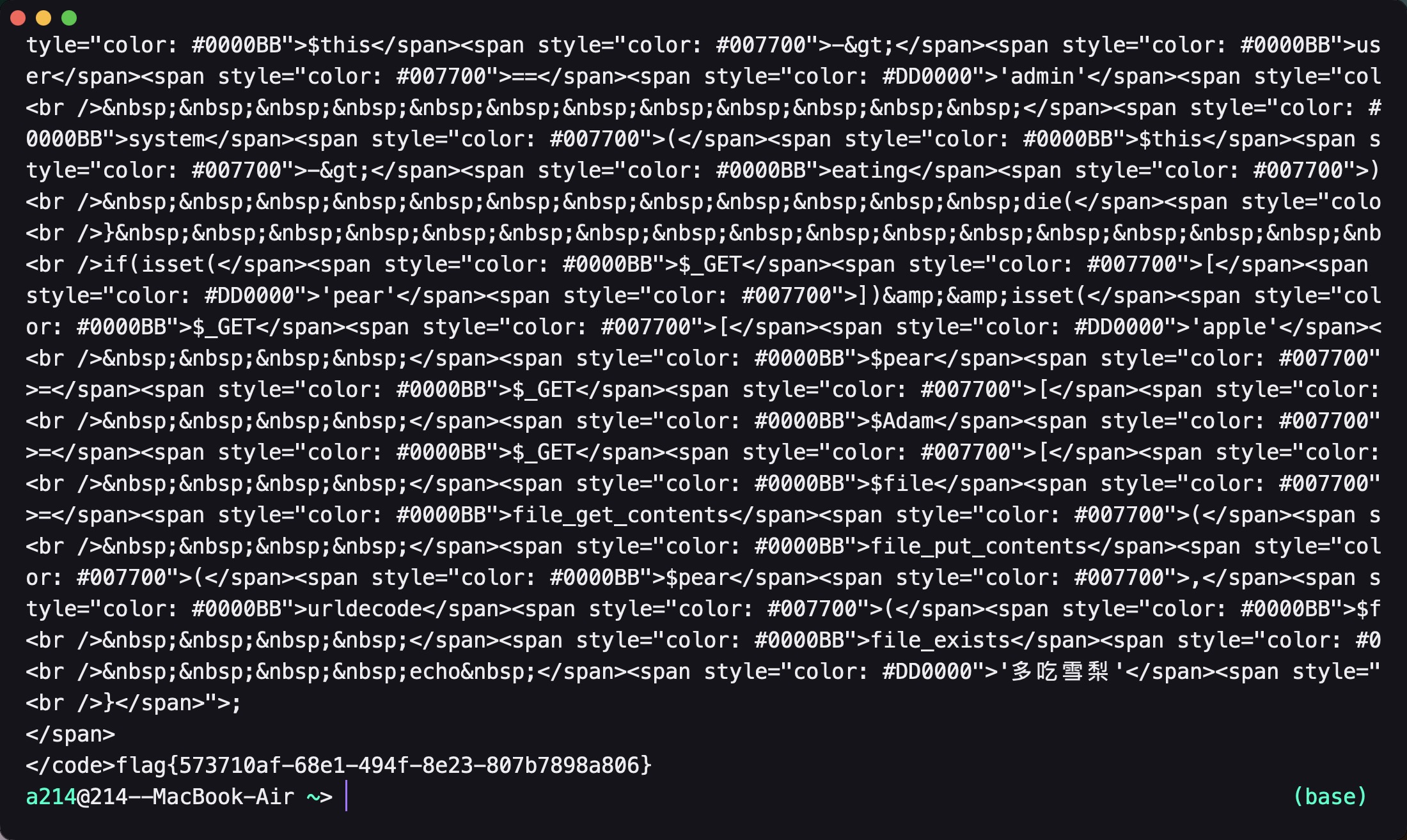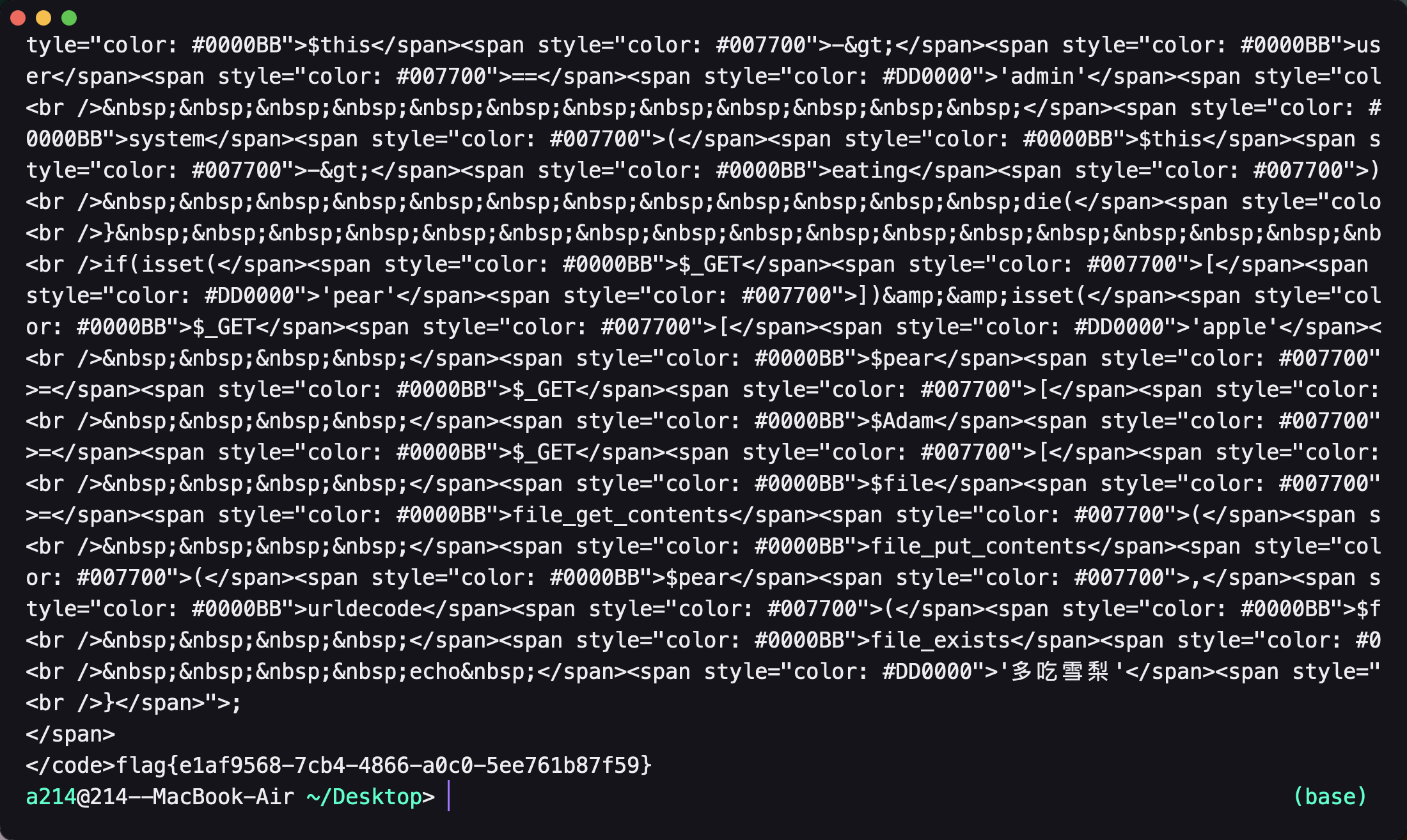 最后上传就能 RCE 了, ls 看到 flag 名字后 cat 就能得到结果: