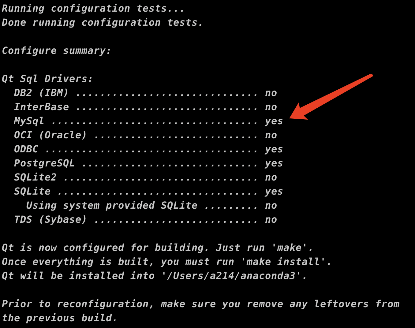 这一步是最折磨的,配置了足足一天半,首先我们使用 brew install 安装下来的 Qt 默认是没有 mysql 驱动的,只有 sqlite 的驱动,所以我这里的解决方法就是自己编译一个。
